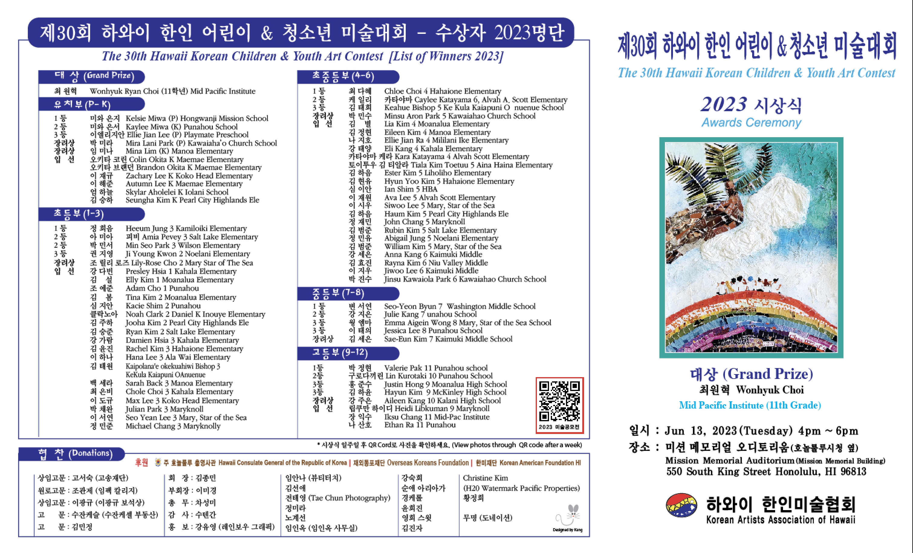 - 제30회 - 2023 HAWAII CHILDREN'S ART CONTEST